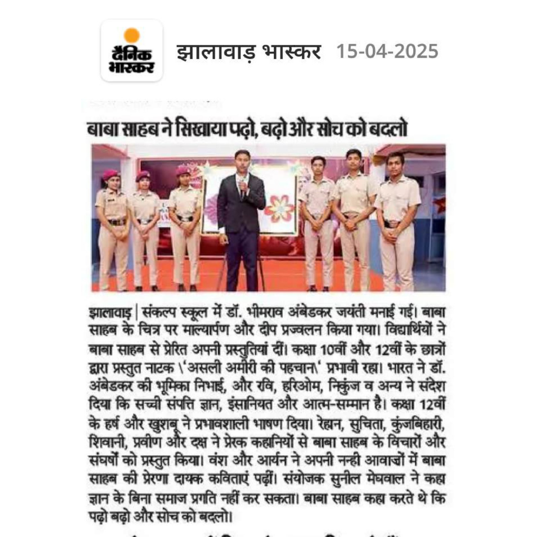 Established in 2005, Sankalp Academy is a CBSE-affiliated school proudly recognized as one of the best in the Jhalawar and Kota (Hadoti) region. In 2023, we embraced the Sainik School pattern, combining academic excellence with military-style discipline, physical fitness training, and focused preparation for NDA, Agniveer, SSC, and other competitive exams.Join us in our mission – “Rashtra Nirman Ek Sankalp” – and experience a transformative education that nurtures responsible citizens and future leaders of India.
