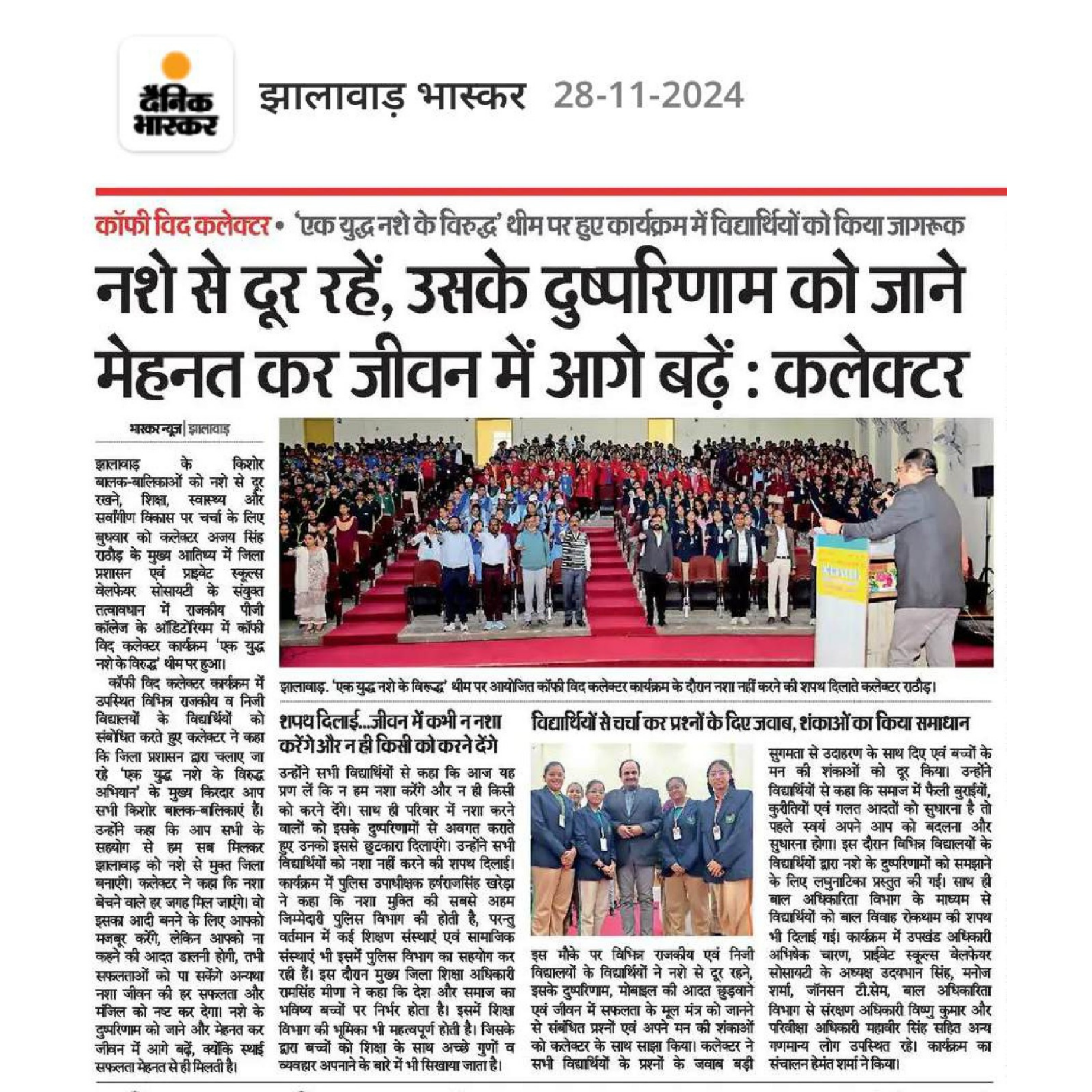 प्रिय अभिभावकगण एवं विद्यार्थियों,